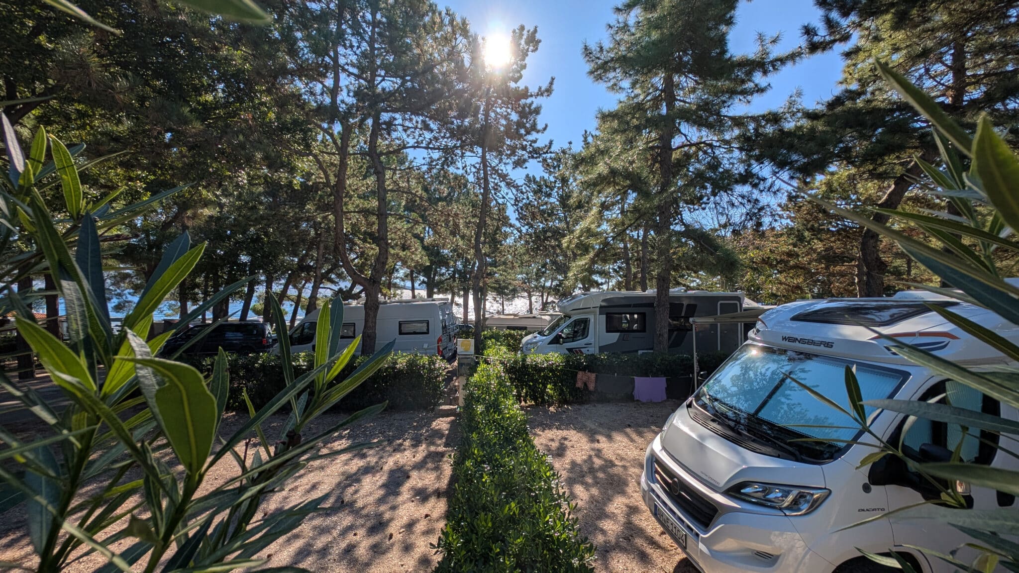 Bei einem kurzen Telefonat mit Valmar – dem Betreiber dieses und vieler anderer Campingplätze in Kroatien – erkundigen wir uns über freie Plätze Mitte Oktober. Uns wird zugesichert, dass es viele Plätze gibt und auch viele frei seie. Auch mit der ACSI-Karte, welche zum günstigen Campen auf den Kompfortplätzen berechtigt, gäbe es einige freie Kapazitäten, nur die erste Reihe Meer wäre ausgebucht, wird uns versichert. Also ab in den Van und quer über die Insel zum neuen Platz.
