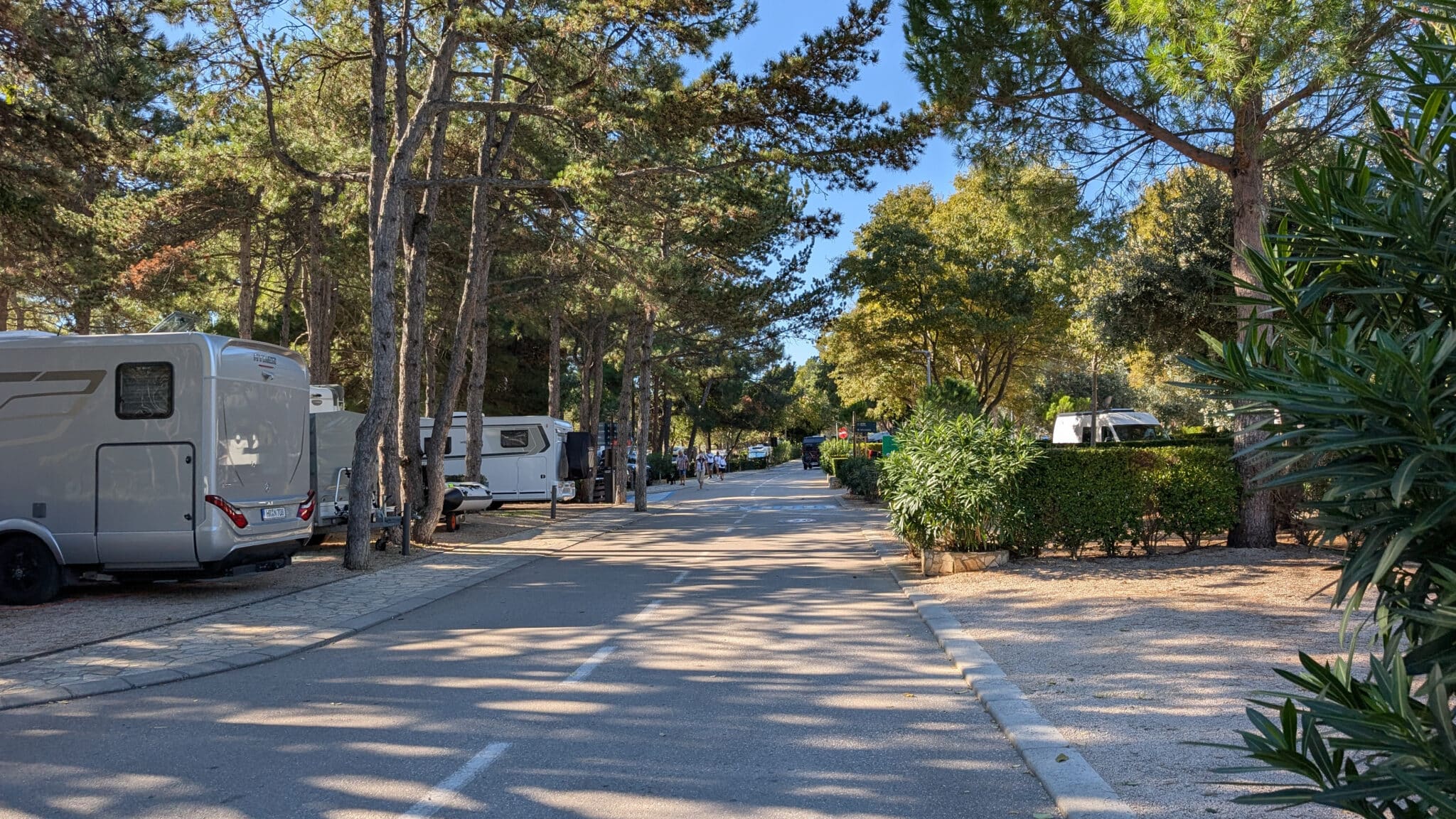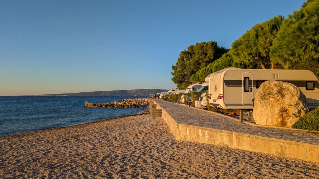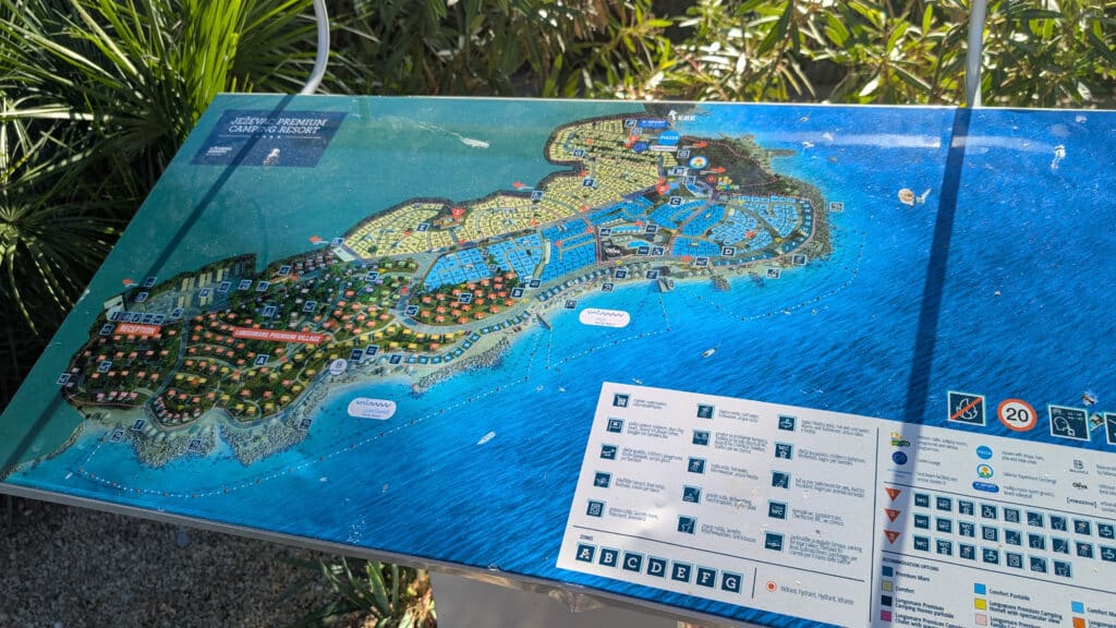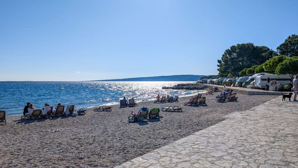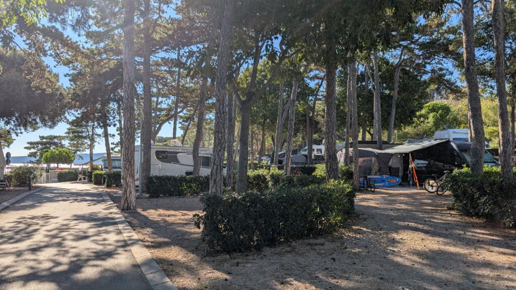 Bei einem kurzen Telefonat mit Valmar – dem Betreiber dieses und vieler anderer Campingplätze in Kroatien – erkundigen wir uns über freie Plätze Mitte Oktober. Uns wird zugesichert, dass es viele Plätze gibt und auch viele frei seie. Auch mit der ACSI-Karte, welche zum günstigen Campen auf den Kompfortplätzen berechtigt, gäbe es einige freie Kapazitäten, nur die erste Reihe Meer wäre ausgebucht, wird uns versichert. Also ab in den Van und quer über die Insel zum neuen Platz.