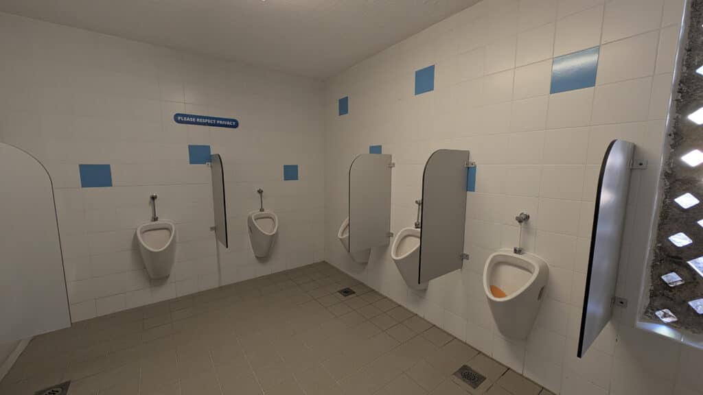 Geputzt wird täglich in der Früh, leider war dann der gesamte WC und Waschbereich zwischen 7:30 und 8:00 Uhr gesperrt, die resche Dame hat uns mit den Worten „No, no, no!!!“ weggeschickt. Der Weg zum nächsten Waschhaus ist recht weit, wenns schon drück 😉