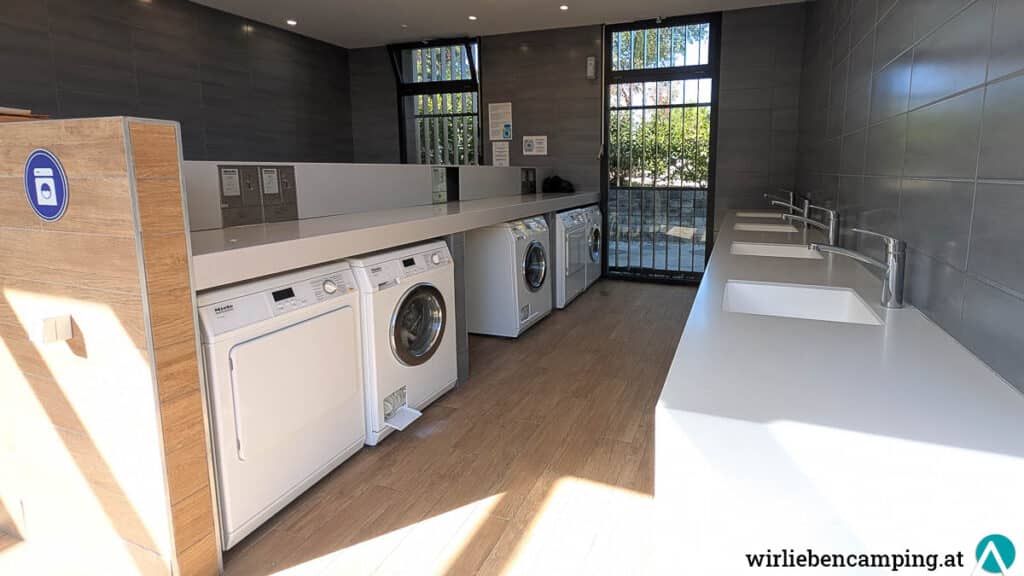 Für Geschirr und Wäsche stehen ebenso im Waschhaus Becken zur Verfügung, ebenso gibt es einige Waschmaschinen und Wäschetrockner. Geschirrspüler hätte es auch gegeben, bei unserem Besuch waren diese jedoch defekt.