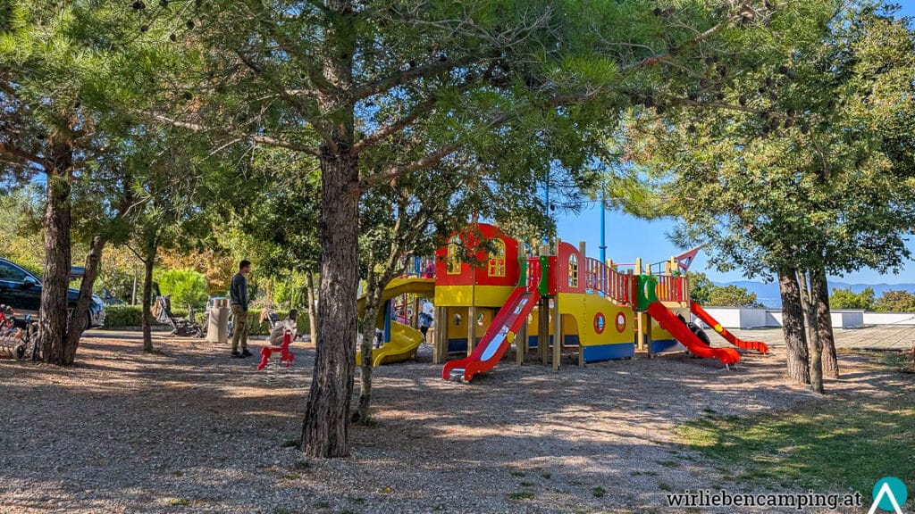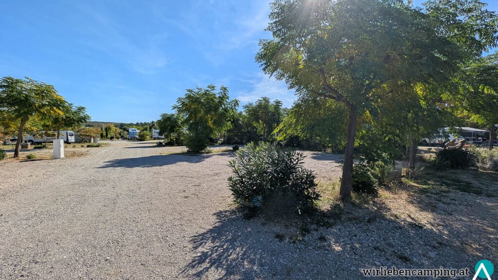 Der Fünfsterne Campingplatz ist großzügig angelegt und liegt direkt am Meer. Die Parzellen sind in Terrassen angelegt und haben allesamt Schotter als Untergrund. Viele Olivenbäume, Lorbeerhecken und Rosmarinsträucher säumen die Parzellen – einige größere Bäume sorgen für Halbschatten. Jede Parzelle ist mit einem eigenen Stromkasten, Frischwasser sowie einem Kanalanschluss ausgestattet.