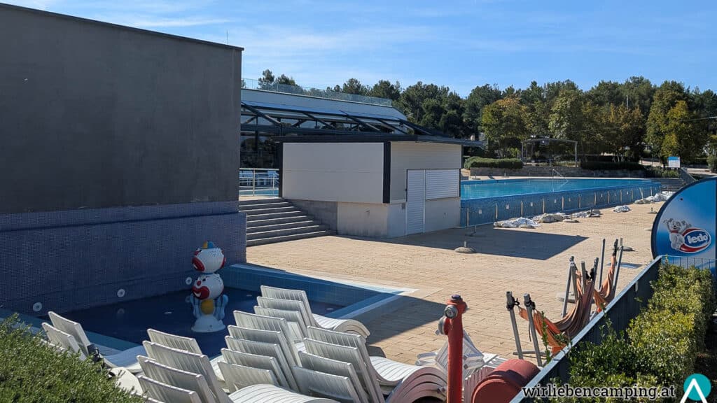 Der Campingplatz liegt an der Bucht Pušća und schlängelt sich entlang des langen, feinen Kiesstrands, welche flach abfällt. Gegenüber sieht man die LNG-Türme des unweitgelegenen LNG-Hafens. Der Campingplatz hat auch einen kleinen Pool nahe des Restaurant. Einige Mobilhomes verfügen über private Pools.