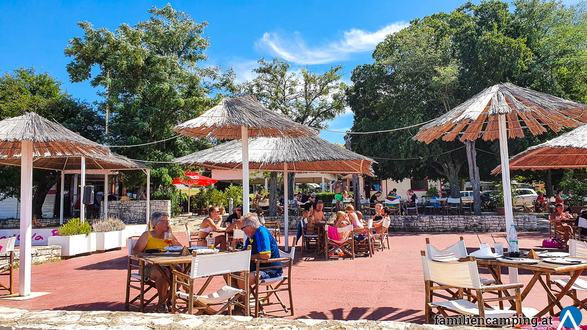 Es gibt auf dem ganzen Campingplatz insgesamt sieben Lokale bzw. Restaurants. Eine Pizzeria befindet sich direkt in der Mitte des Campingplatzes in der Nähe des Supermarkts. Zwei weitere Restaurants sind jeweils in beiden Pools. Ein Lokal liegt bei der Hauptstraße direkt am Meer. Hier ist abends immer viel los, da das Essen mit Ausblick zum Strand doch etwas Besonderes ist. Die anderen drei Restaurants sind am Strand eher am Rand des Campingplatzes verteilt.