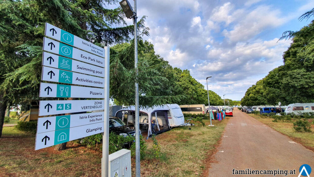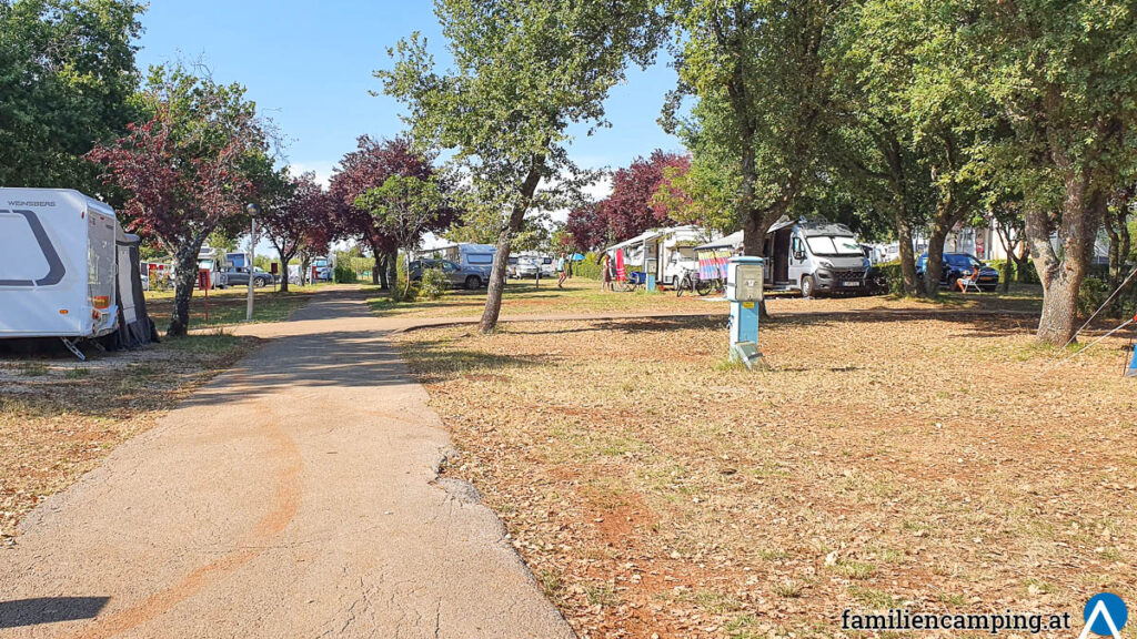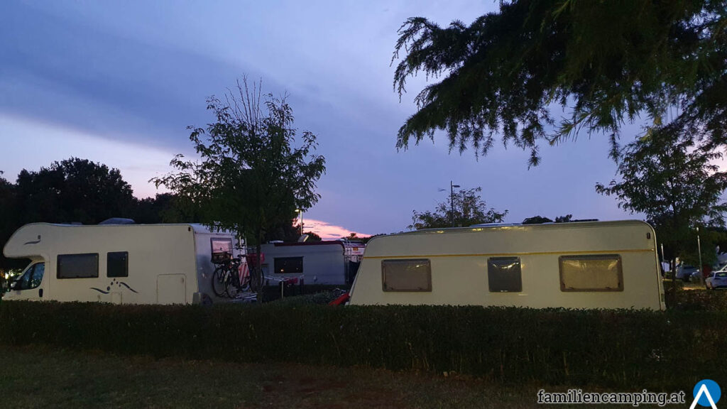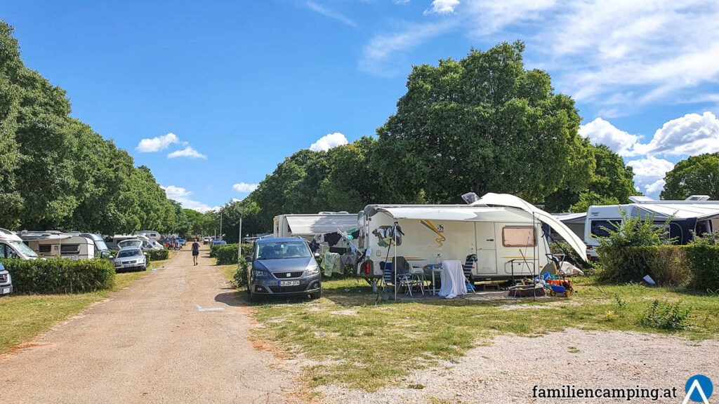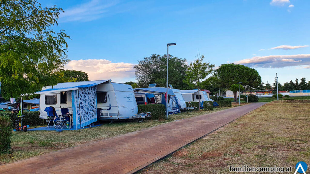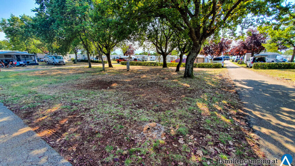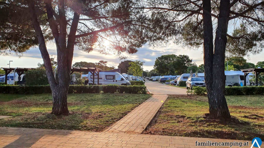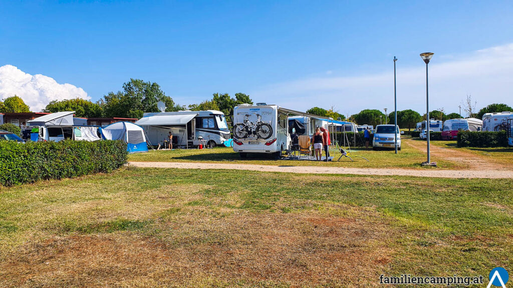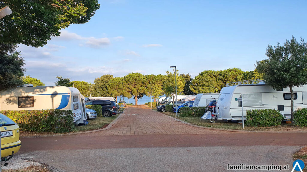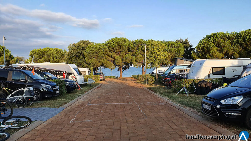 Zwischen den Orten Umag und Novigrad liegt der Campingplatz etwa 5 Kilometer außerhalb der Ortschaften direkt zwischen Straße und Meer.