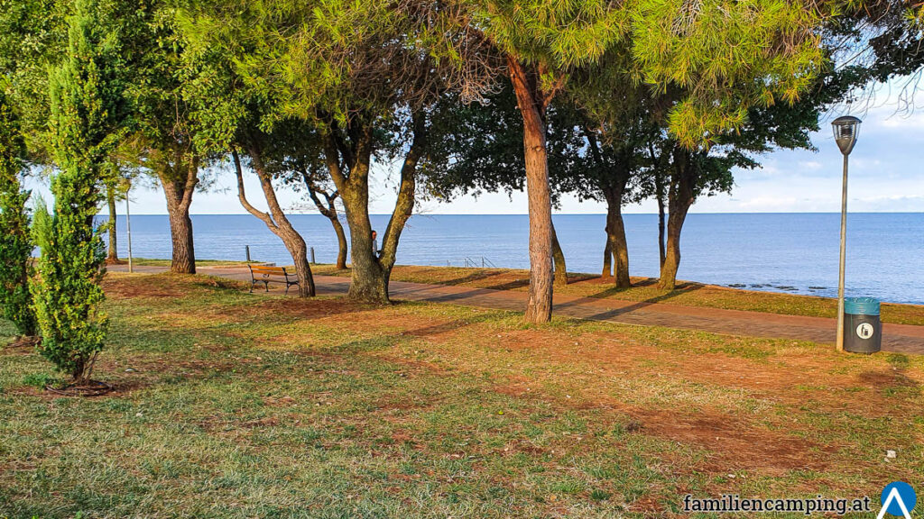 Umag ist eine Kleinstadt in Kroatien und liegt ein paar Minuten mit dem Auto entfernt von dem Campingplatz. Die Stadt hat eine schöne, malerische Altstadt und eine schöne Kirche, und zwar die Kirche von St. Mary und St. Peregrin, denn Umag ist ziemlich historisch geprägt. Die Stadt besitzt eine schöne Küste, an der man beispielsweise mit einer Kugel Eis gemütlich entlang spazieren kann.