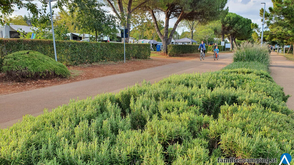 Fahrradfahren und anderes (Roller, Skateboard, Rollschuhe ect) sind am Campingplatz grundsätzlich erlaubt, nur gibt es in bestimmten Bereichen des Platzes, wie zum Beispiel die Hauptstraße, die von der Rezeption bis zum Strand führt, Fußgängerzonen, bei denen Radfahren und anderes nicht erlaubt ist. Diese Zonen sind aber gut sichtbar angeschrieben, wo sie beginnen und wo sie enden.