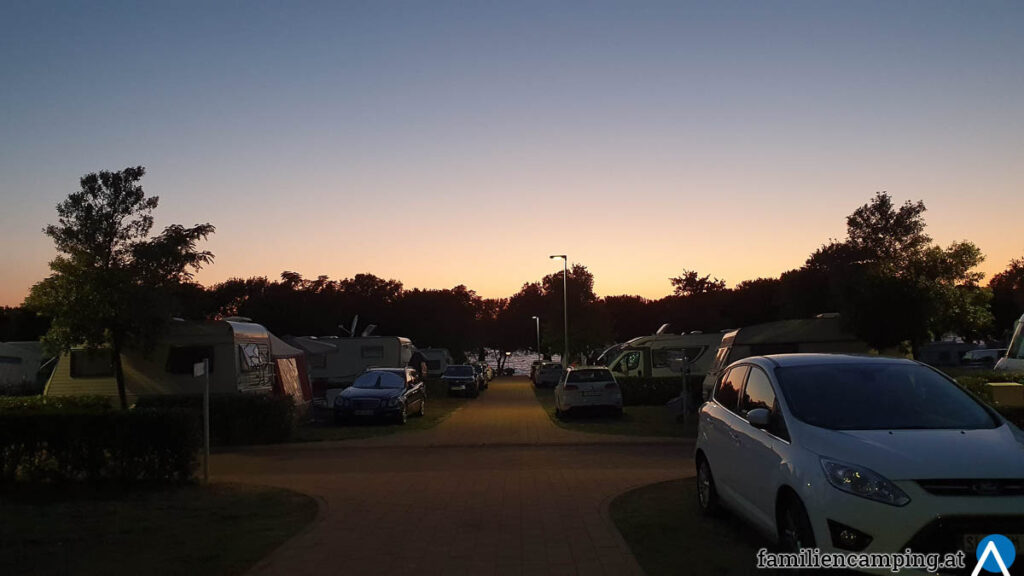 Man muss sich in einer Reihe mit allen Anreisenden anstellen. Wir sind etwa mittags am Campingplatz angekommen und mussten etwas über eine Stunde warten, bis wir an der Reihe waren und schlussendlich einchecken konnten. Alle Reisepässe wurden gescannt, wir bekommen noch einen Campingplan, eine Nummer und unsere Parzellennummer. Nach mehreren Stunden Anfahrt, etwas Stau an den Grenzen und Wartezeit am Check-in – endlich angekommen.