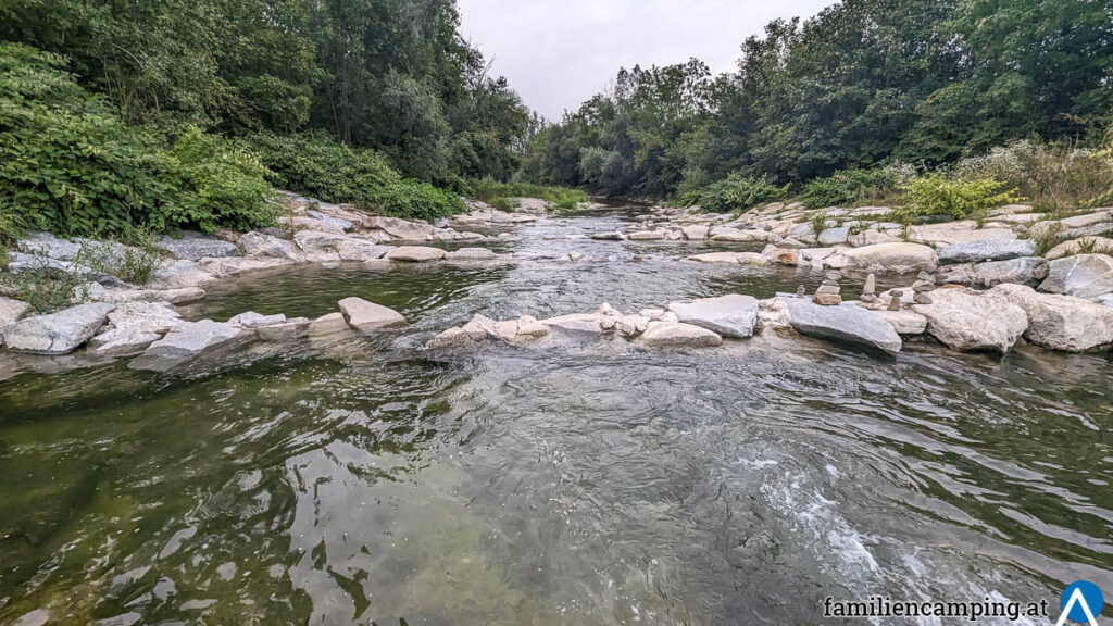 Die Familie begrüßt uns und wir haben nette Gespräche, wir erfahren einiges über den Hof, den neuen Hofladen und, dass wir die zweiten „Schau aufs Land Gäste“ sind, da man erst seit Kurzem auf der Plattform vertreten sei. Wir dürfen einen Tisch unter zwei alten Lindenbäumen mitbenutzen, man zeigt uns den privaten Zugang zur Erlauf und den Hofladen. Mit der e-card bekommt man Zugang, da auch hier alkoholische Getränke verkauft werden. Eine schöne Auswahl an Produkten wie Heidelbeeren, Getränken, Tiefkühlprodukten und vieles mehr vom Hof selbst und Bauern aus der Region können wir kaufen und uns damit für das Platzerl erkenntlich zeigen. Als ein Unwetter aufzieht, bekommen wir einen WhatsApp Nachricht und das Angebot, den Van unter ein Hallenvordach zu stellen – vielen Dank! Wir nehmen gerne an – zum Glück zieht das Unwetter vorbei.