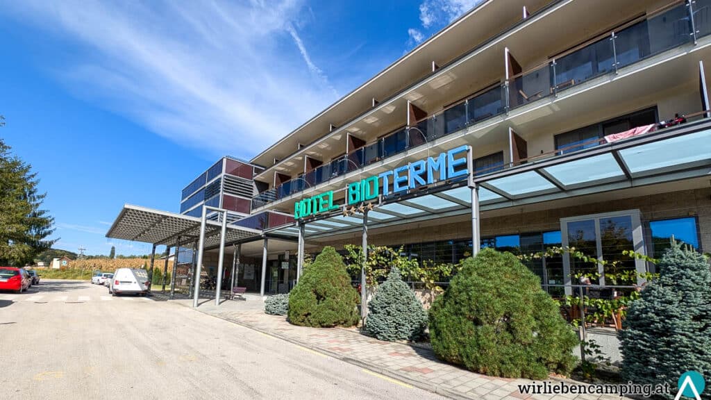 Als Gast am Stellplatz bekommt man 20% Ermäßigung auf die Eintritte in die BIOTERME sowie Sauna und Fitness, 10% Rabatt gibt’s auf Speisen im SB- sowie im Hotelrestaurant.