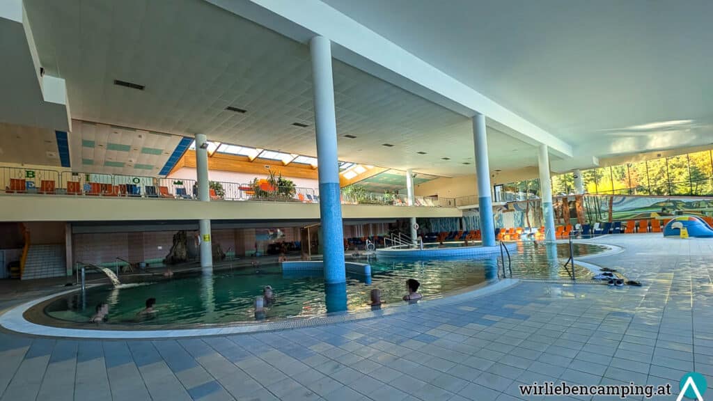 Innen gibt es auf 600 Quadratmetern Wasserfläche aufgeteilt einige Massageelemente und Whirlliegen sowie einen Kleinkinderbereich und ein Schwimmerbecken. Draußen stehen 1400 Quadratmeter zum Baden zur Verfügung, welche auf Schwimmbecken, Massagebecken und einem Wildbach, welcher stündlich 10 Minuten fließt, aufgeteilt sind.