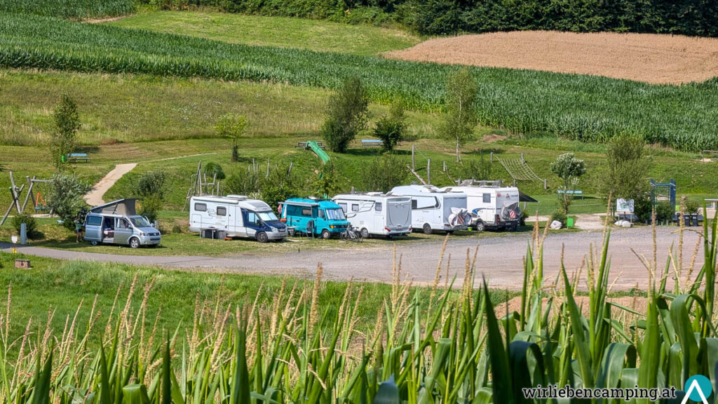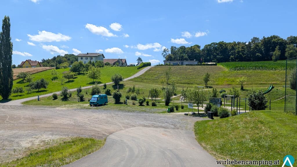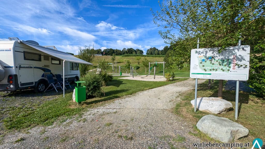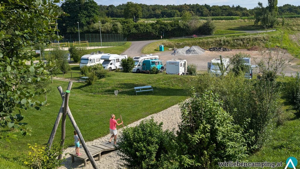 Der Platz ist direkt neben dem Generationenpark, einem Spielplatz für Jung und Alt und dem Naturschwimmbad zu finden.